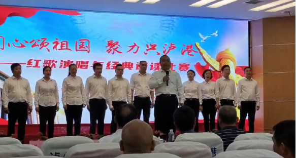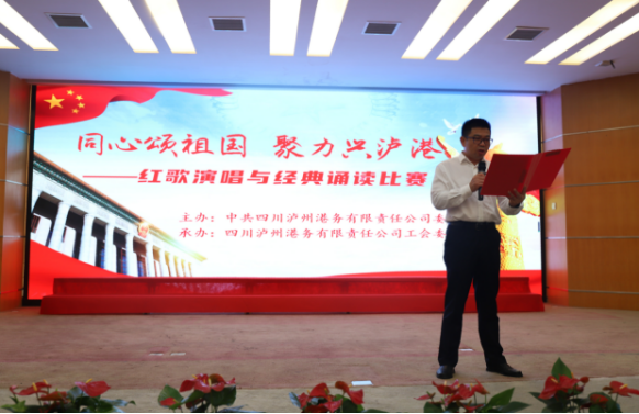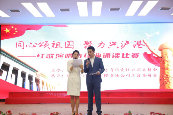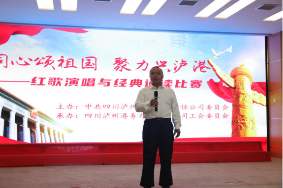 “红歌演唱与经典诵读比赛”在大合唱中华人民共和国国歌《义勇军进行曲》中拉开帷幕,来自泸州港务公司和驻港船公司混编的“团结队”“兴港队”“远洋队”“飞浪队”“红星队”5支队伍,献出了《我骄傲,我是中国人》等经典诵读和《怀揣感恩之心,共创泸州港美好明天》等精彩演讲,表达了对党、对祖国、对港口真诚祝愿和无限祈福,经过诵读、演讲两个环节的角逐、比拼,评选出了优秀名次。各参赛队员声音嘹亮,精神饱满,展示了蓬勃向上、团结奋进的精神风貌,赢得了现场领导、嘉宾及评委的一致好评。在诵读和演讲比赛两个环节之间,活动穿插了文艺节目,口技、萨克斯独奏、独唱、大合唱等多种形式的文艺节目同台竞技,博得观众阵阵掌声。《我的祖国》《歌唱祖国》《大中国》等一首首曲目,表达了全体泸港人对祖国、对家乡、对港口的无限热爱之情和英雄主义气概。