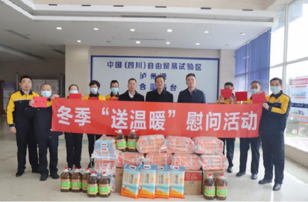 1月4日,省港投集团党委委员、副总经理杨军一行到泸州港务公司开展冬季“送温暖”慰问暨安全环保督查。杨军总代表集团公司向一线职工送上亲切的新年祝福,向不畏严寒、坚守一线的员工致以最深的敬意,将集团公司党委的关心和温暖及时送到困难职工手中。
