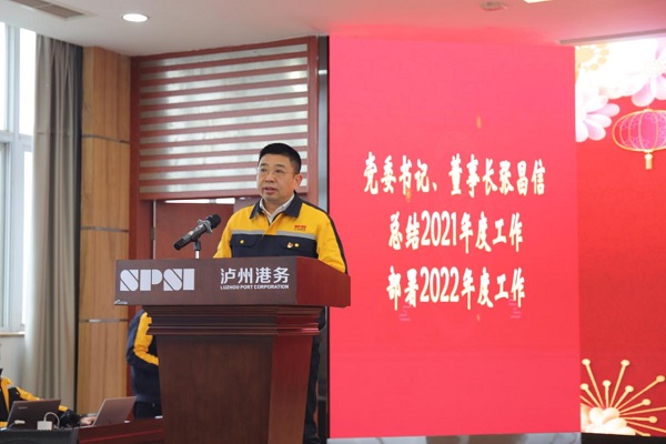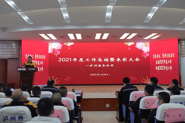 1月28日上午,泸州港务公司召开2021年度工作总结暨表彰大会,回顾总结2021年工作亮点,分析和研判当前发展态势,部署2022年全年工作。泸州港务公司在家班子成员、全体员工(除当班作业人员外)170余人参加会议。